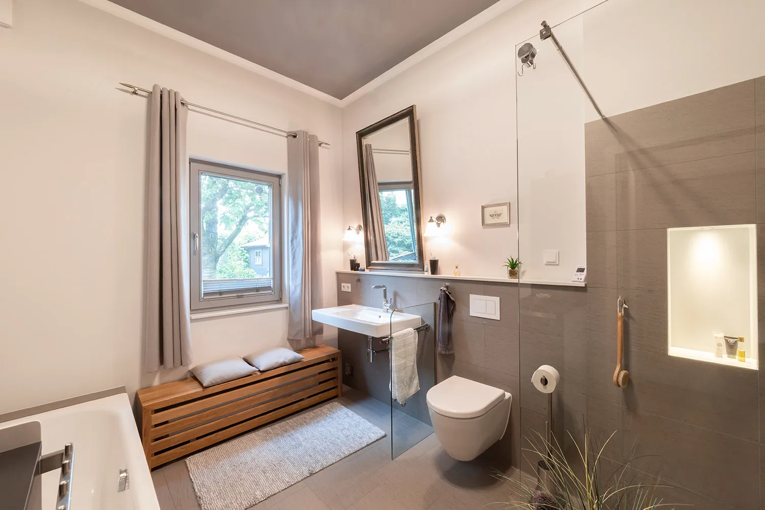 • Wohlfühlatmosphäre dank Massivholzdecke mit Versprung