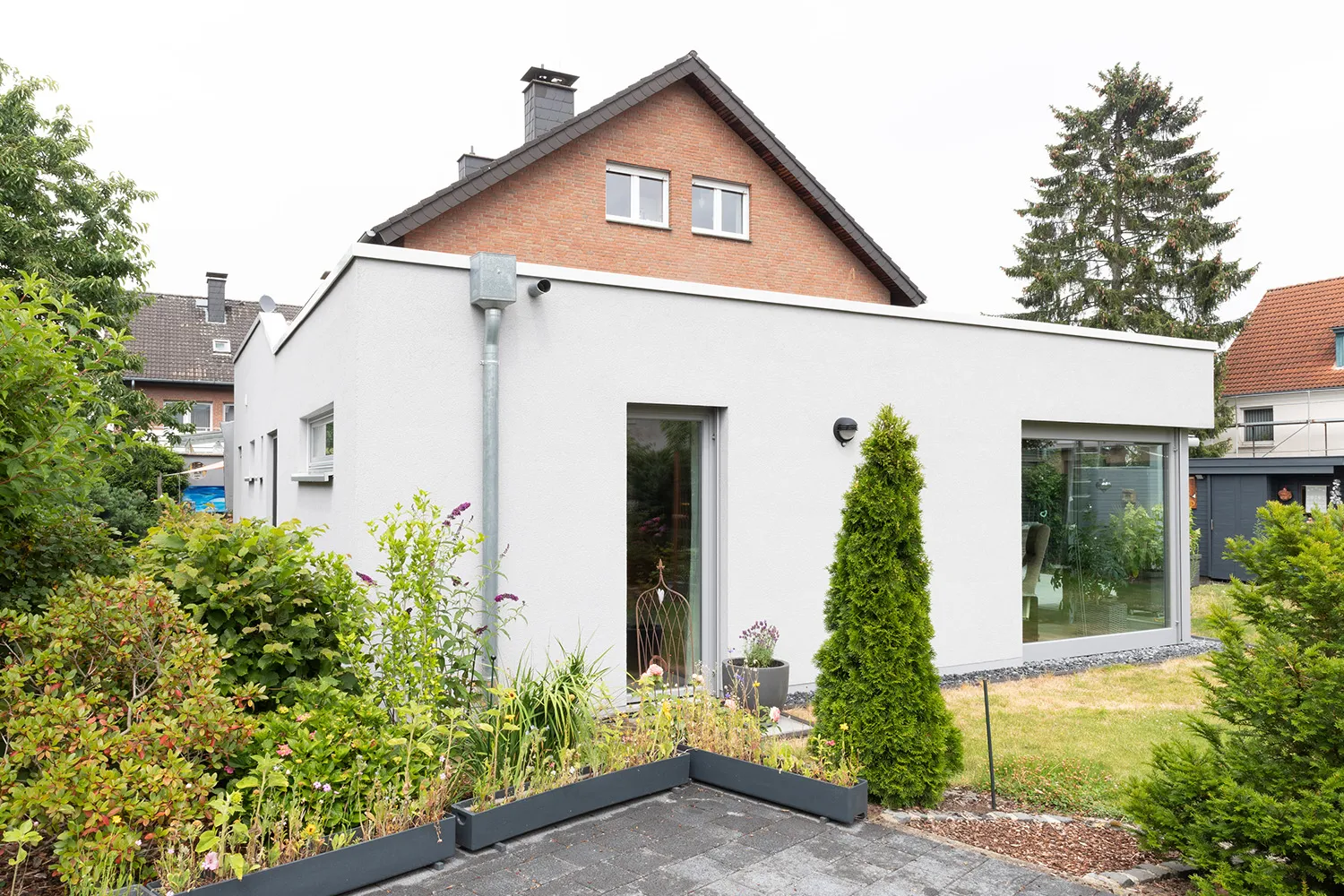 Geht nicht? Das gab es bei der Zusammenarbeit mit BAUART THIELE nicht. Herr Thiele und sein Team hatten immer eine Lösung parat. Mit unserem Anbau wollten wir eine komfortable, altersgerechte Wohnung gestalten. Dabei war uns besonders wichtig, dass sie barrierefrei ist. Als wir Herrn Thiele persönlich kennengelernt haben, war uns klar: Er setzt unsere Idee um! Dank der Dachbegrünung sind unsere Energiekosten im Neubau deutlich geringer als in unserem vorherigen Haus.