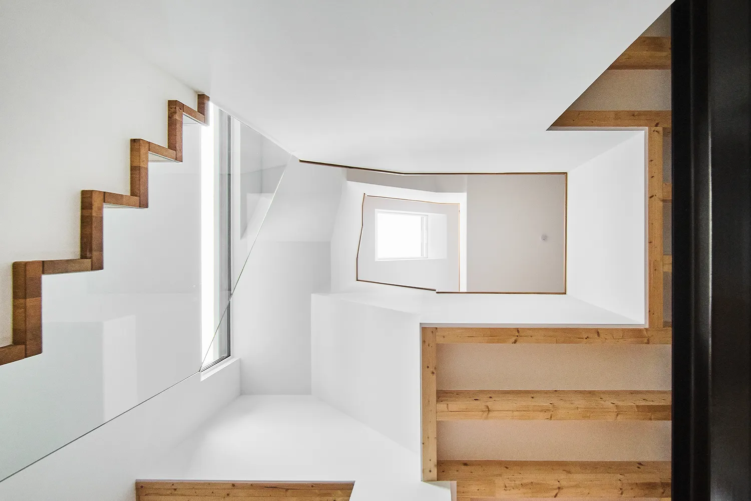 Dreistöckiger Holzrahmenbau mit elegantem Treppenhaus