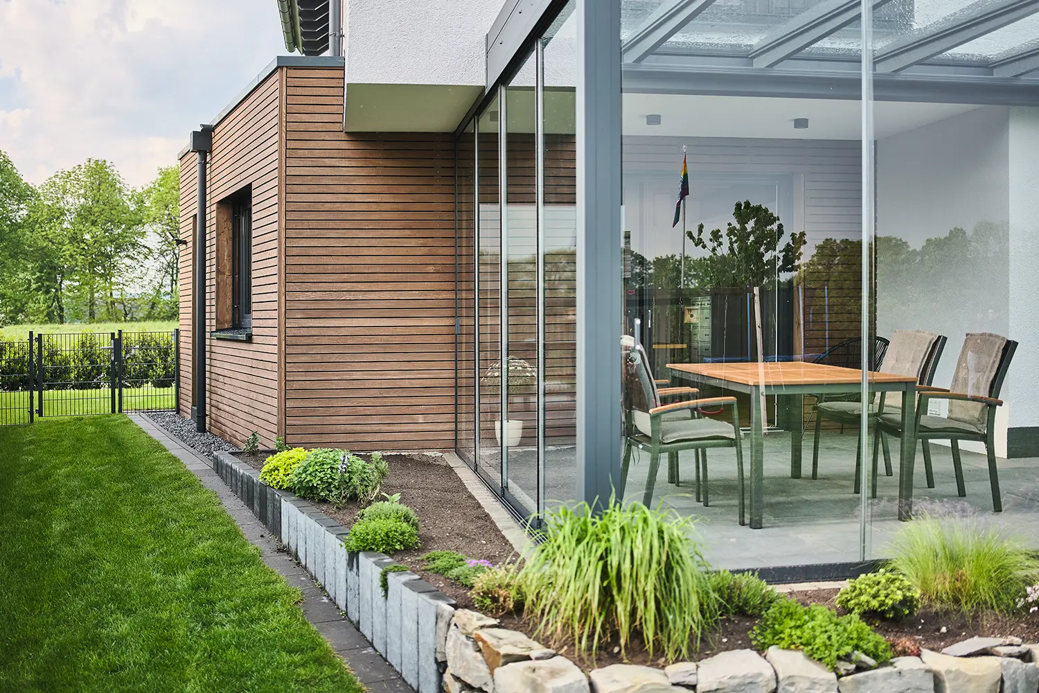 • Lichtdurchfluteter Wintergarten mit rahmenloser Verglasung