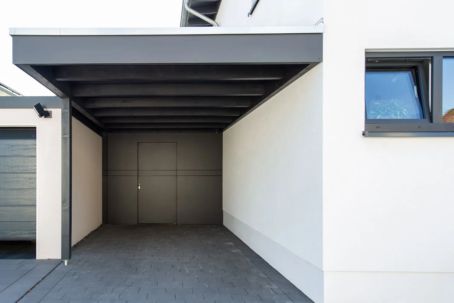 • Vordach in die Hausarchitektur integriert