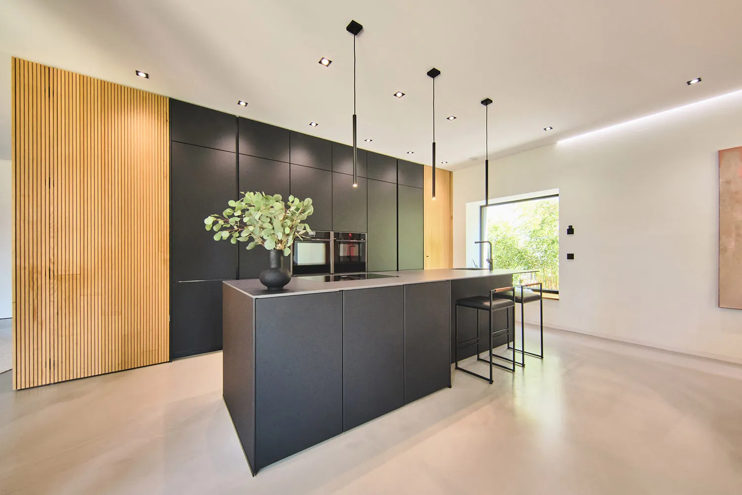 • Puristische Küche in mattem Schwarz