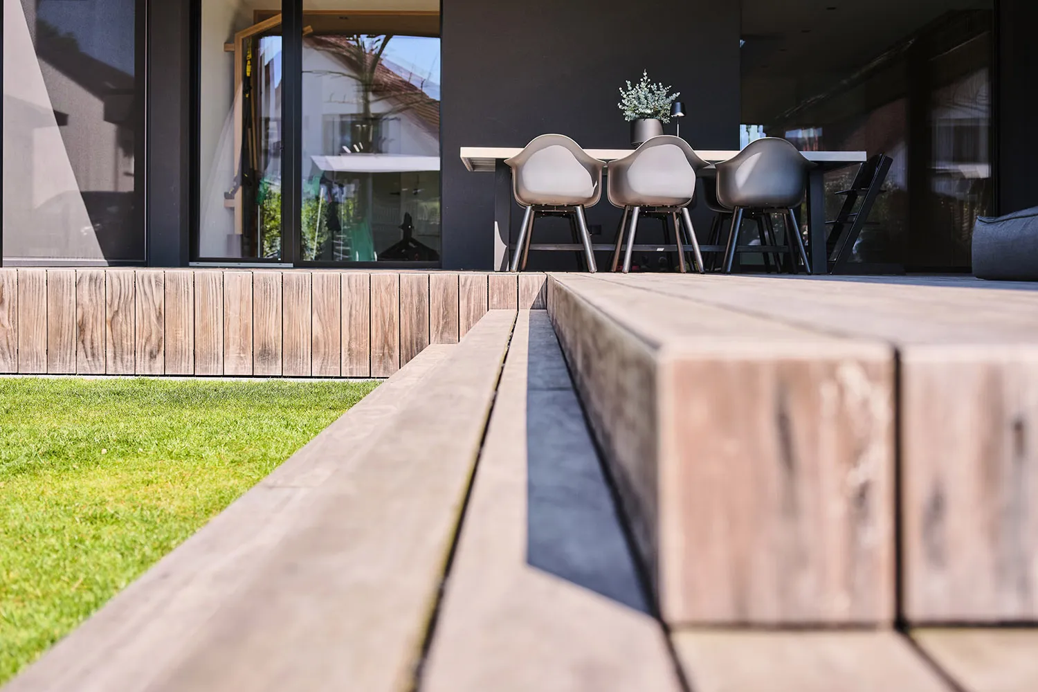 • Großzügige Holzterrasse mit langlebigem Kebony-Holzboden