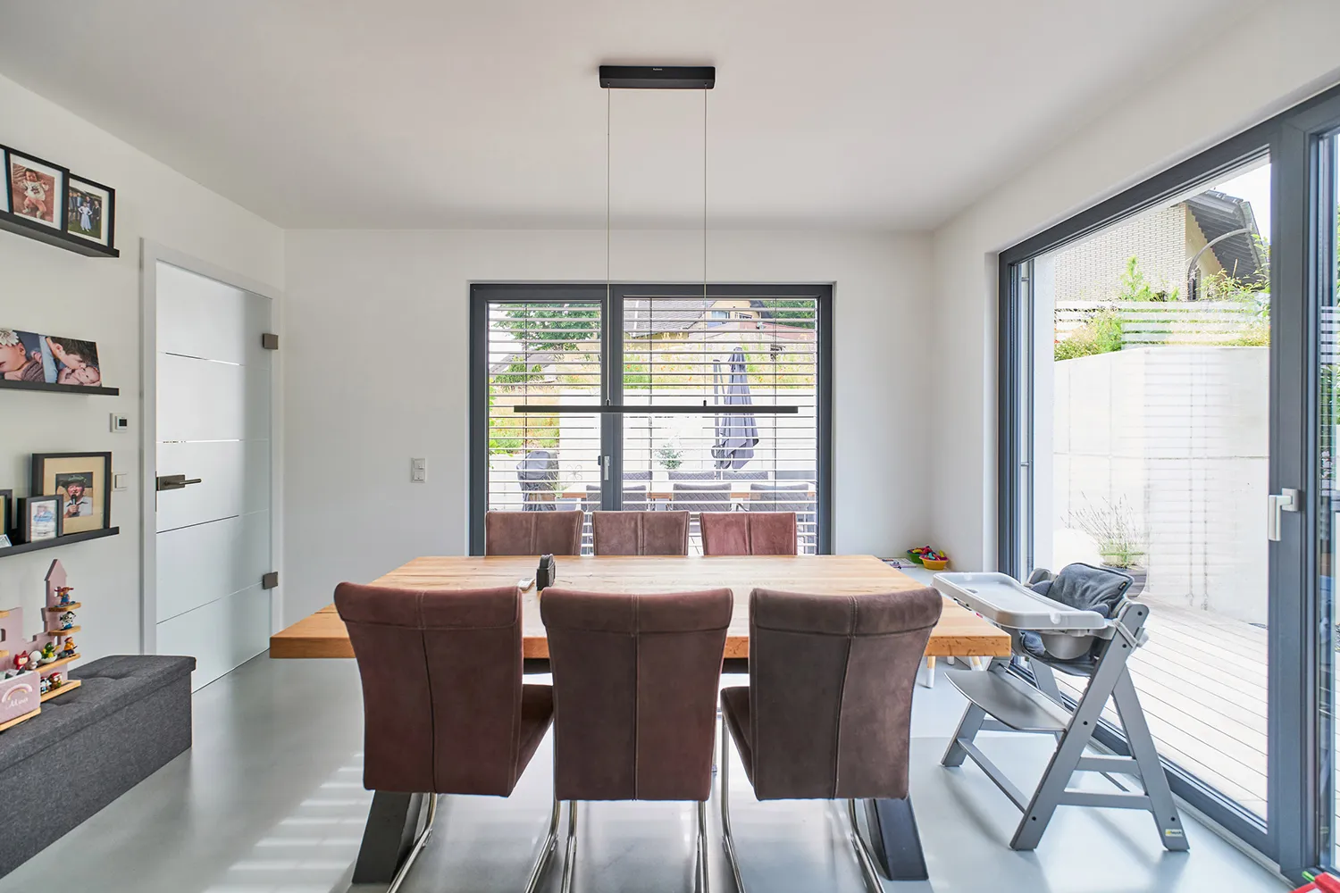 • Großflächige Fenster mit Lamellenverschattung