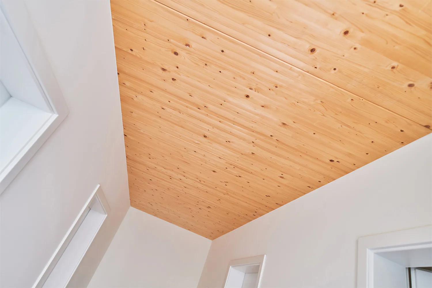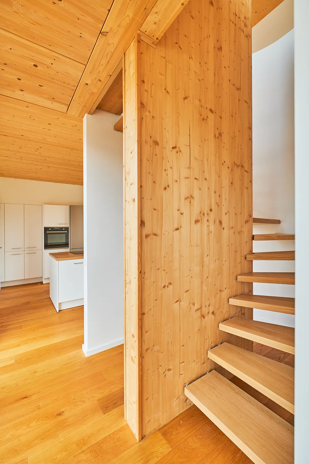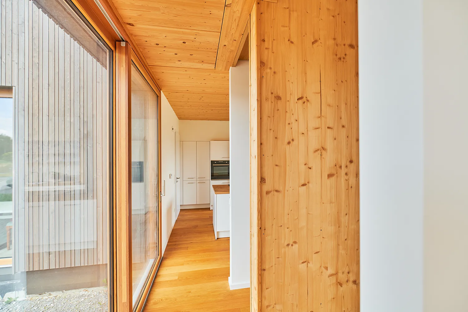 Dieses Projekt veranschaulicht, wie wir als spezialisierte Holzrahmenbauer eine innovative Synthese aus Qualität, Funktionalität und ansprechendem Design schaffen. Die vollständig aus Holz gefertigte Fassade, der Dielenboden und die bodentiefen Fenster schaffen eine moderne Optik, die Funktionalität und Schönheit in perfekter Balance vereinen.
