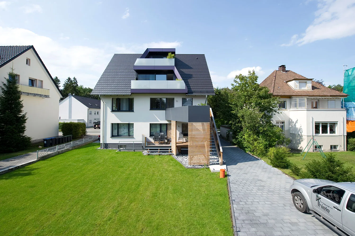 • Überdachung des unteren Balkons bildet Balkon vor oberer Dachgaube