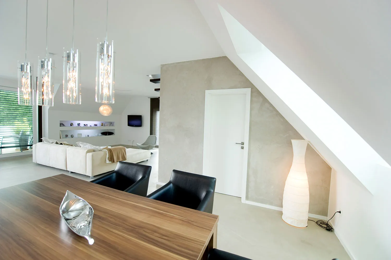 Der maßgeschneiderte Holzrahmenbau bietet einen tollen Wohlfühlfaktor: Hohe Decken oder individuelle Raumgestaltungen erhalten Sie zu einem fairen Budget. Holz riecht gut, klingt gut und fühlt sich gut an. Es ist ein warmer Baustoff, der dem menschlichen Körper keine Wärme entzieht, sondern Wärme spendet, für eine hervorragende Akustik sorgt und gut für die Sinne ist.